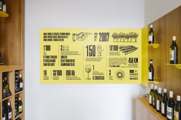 Nos compétences en design d’intérieur, scénographie et identité graphique ont été mobilisées pour transformer la gare de Chexbres en un nouvel espace pensé pour accueillir les visiteur·euses et mettre en valeur les produits locaux. Notre intervention en a fait une véritable porte ouverte sur le Lavaux!