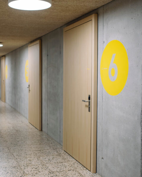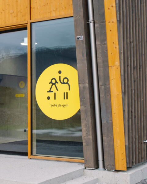 Nous avons réalisé la signalétique complète des nouveaux bâtiments du Collège de Perrosalle à Ollon, conçus par le bureau eido architectes, ainsi que celle des bâtiments existants rénovés.