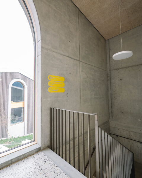 Notre intervention a porté sur la création du concept graphique, le choix des teintes en lien avec les matériaux des nouveaux bâtiments, ainsi que le suivi du projet jusqu’à la pose sur site. Une signalétique basée sur la fonte Digloo, pensée pour s’intégrer harmonieusement à l’architecture tout en facilitant l’orientation des usagers.